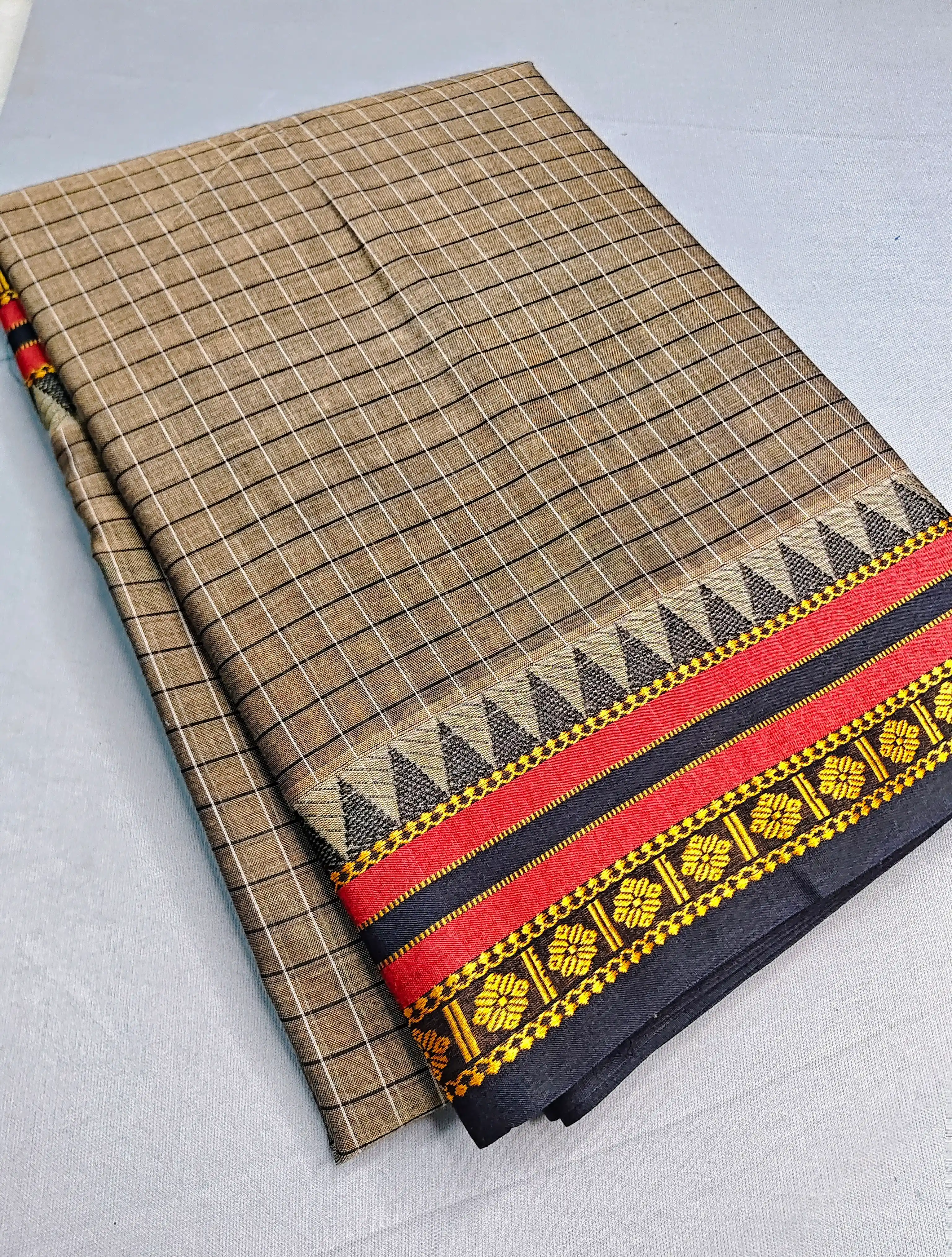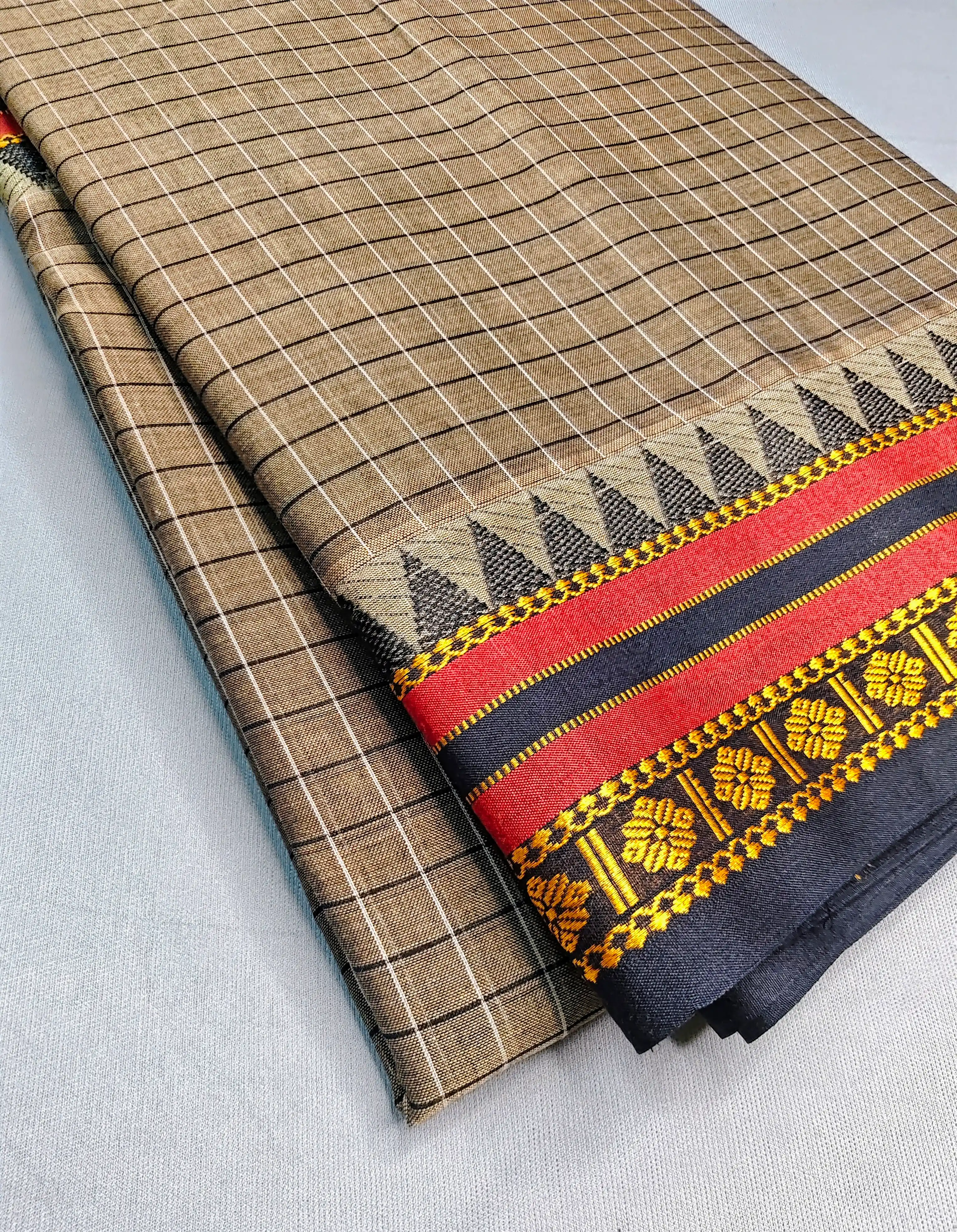 Beige Pure Cotton Premium & Elegant Saree With Running Blouse For Women